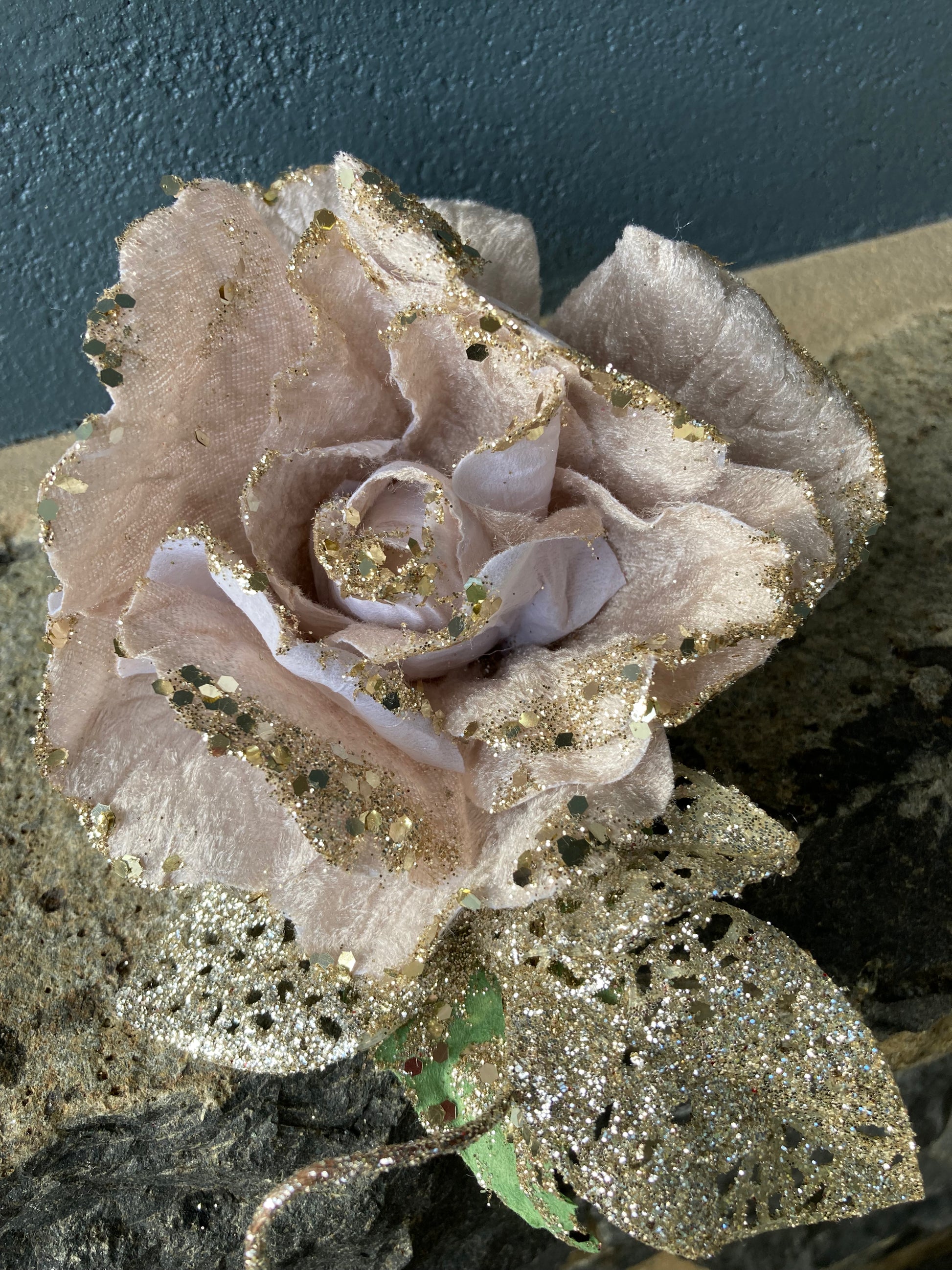 Champagne with a very slight pink hue rose clip Christmas flower.