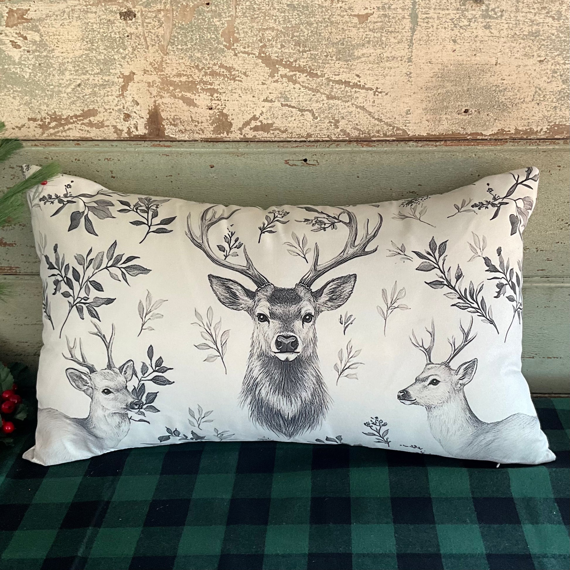 Rectangular shaped deer cushion cover in black, grey and white. Soft silky fabric. Pillow insert not included.