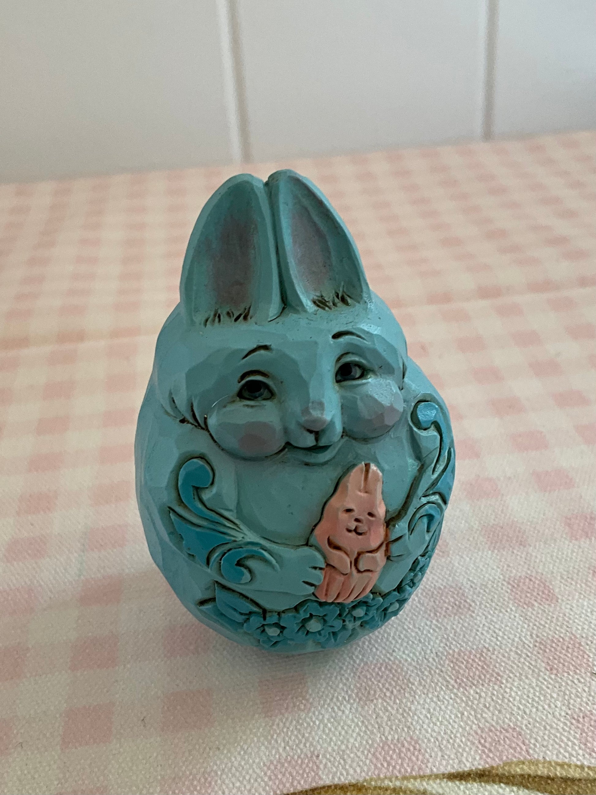 Gorgeous tiny Jim Shore Carved Easter bunny egg. Turquoise Comes in other colours.