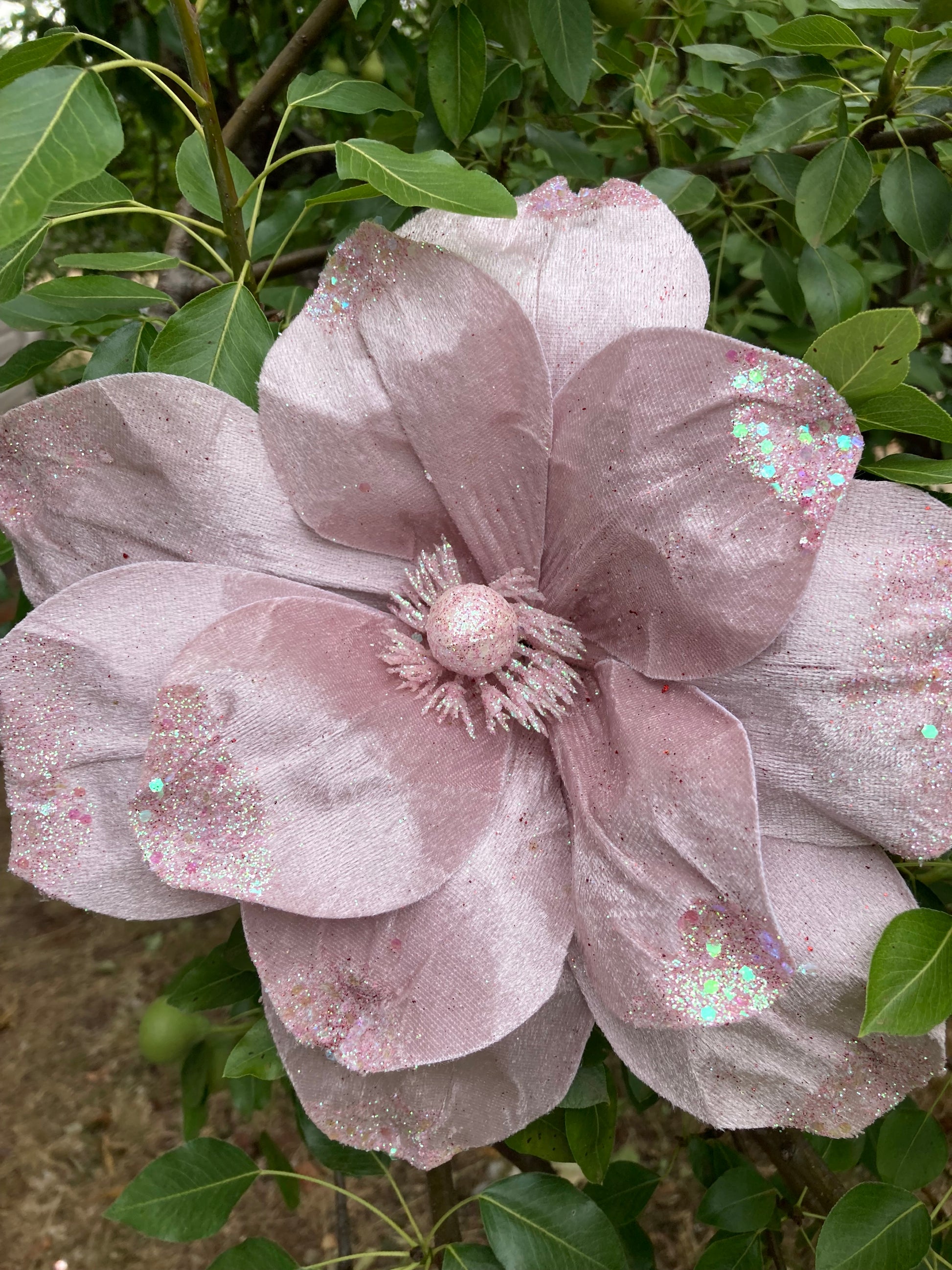 Pretty pale pink velvet magnolia. Dusted with some glitter.