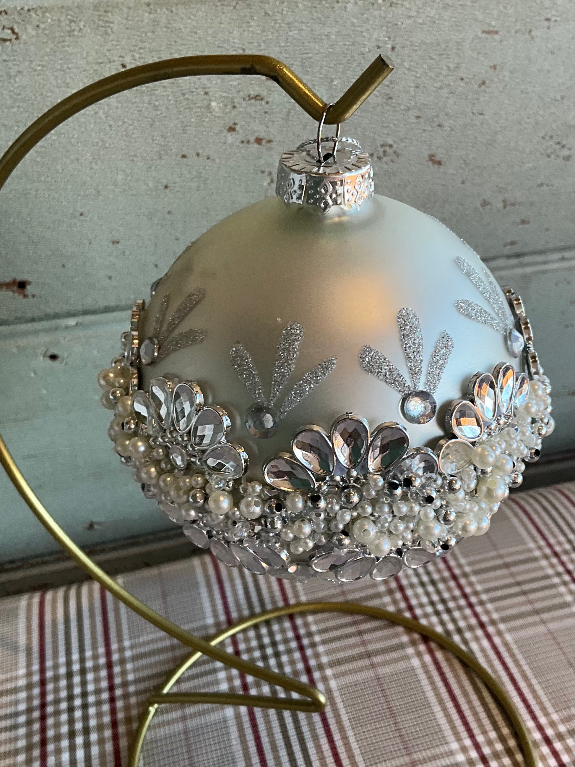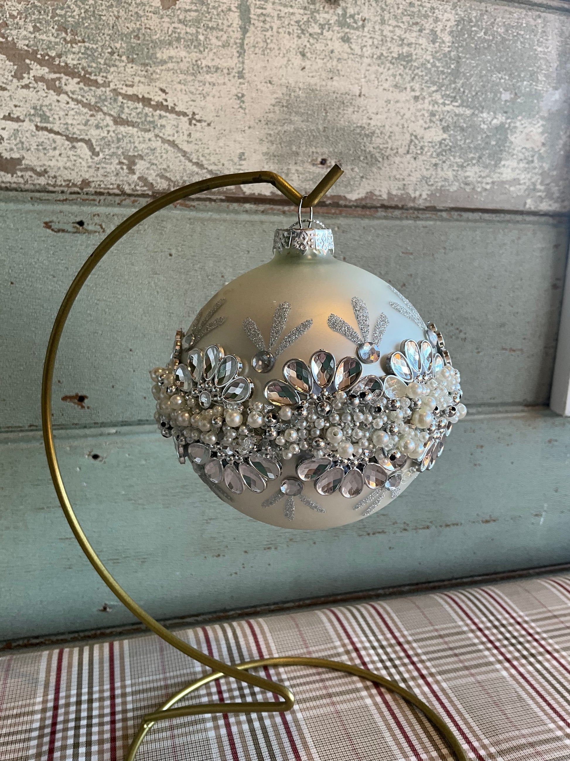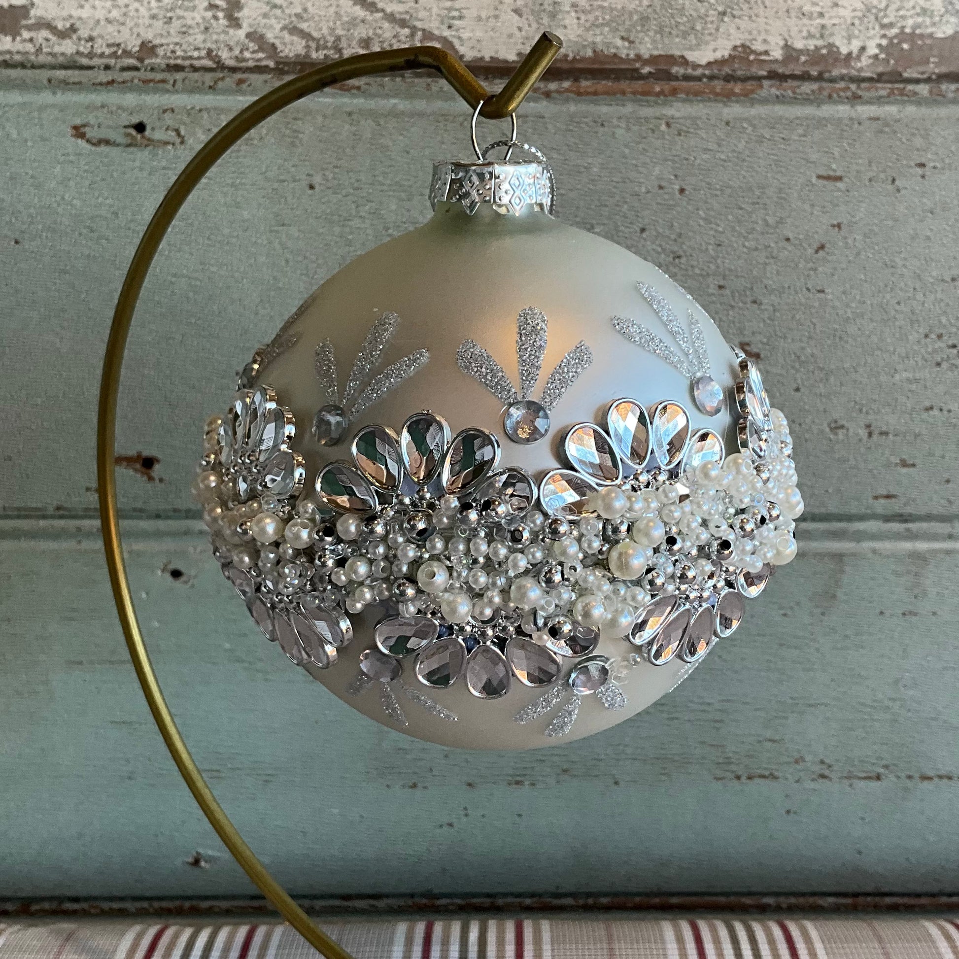 Beautiful white silver pearl glass Christmas decoration with beads and pearls.